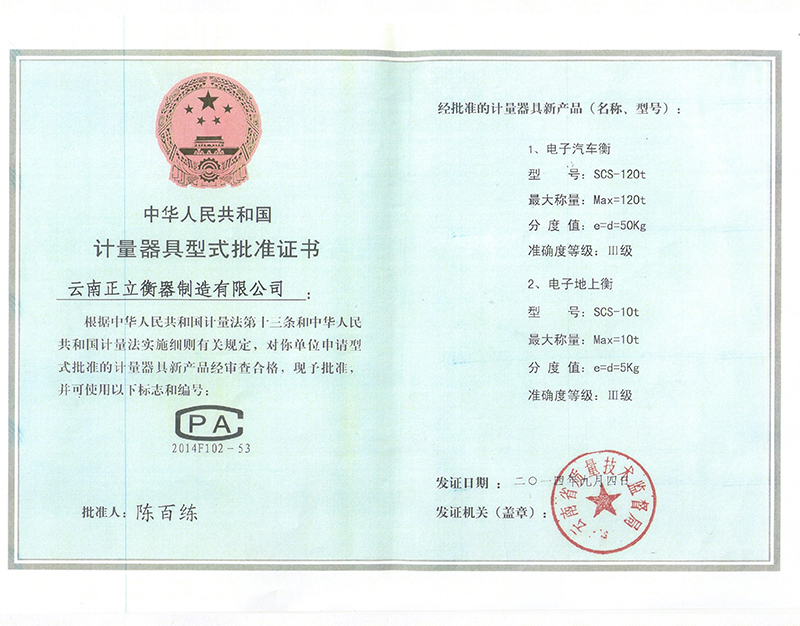 計量器具型式批準證書