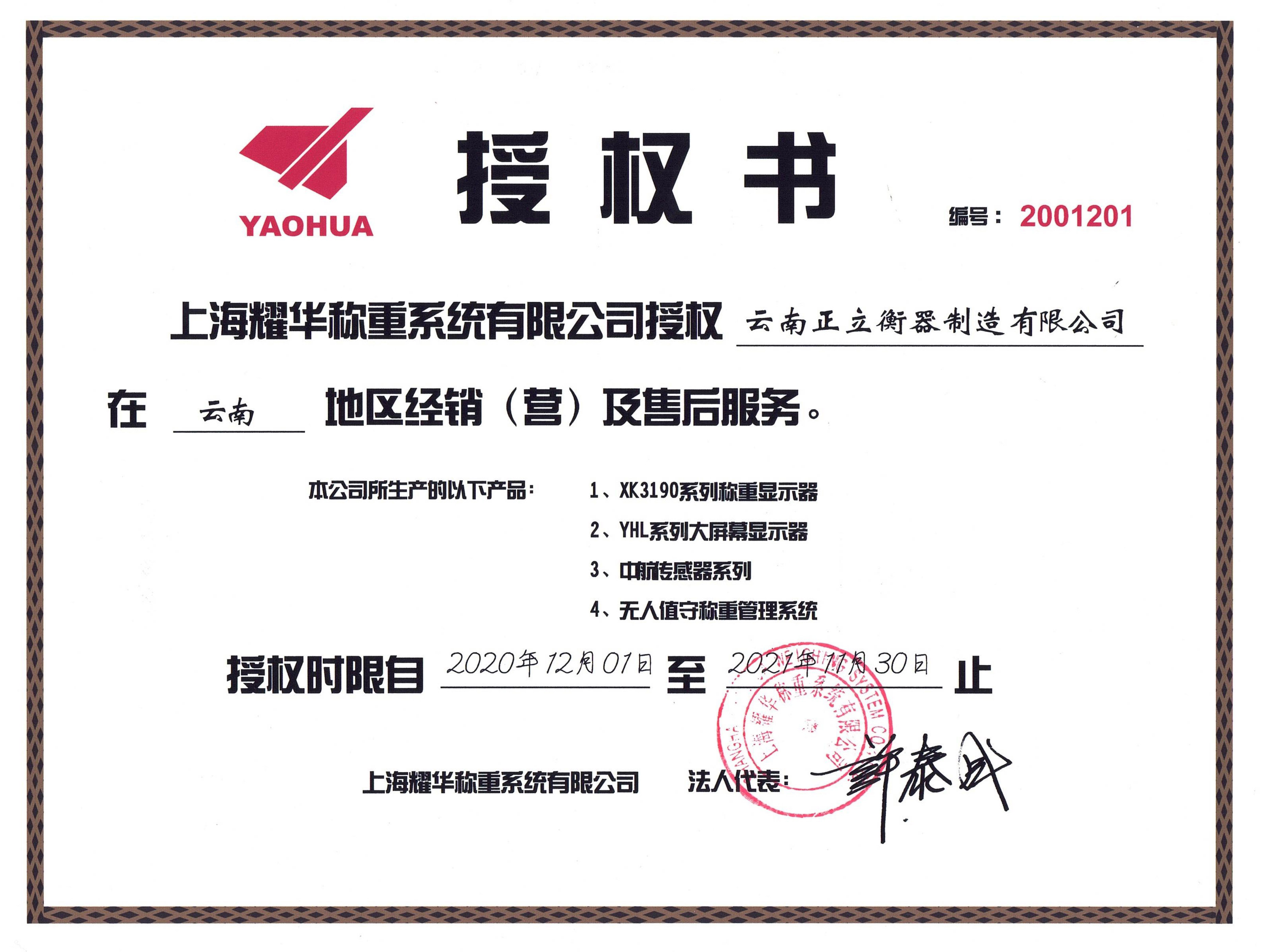 耀華授權(quán)書