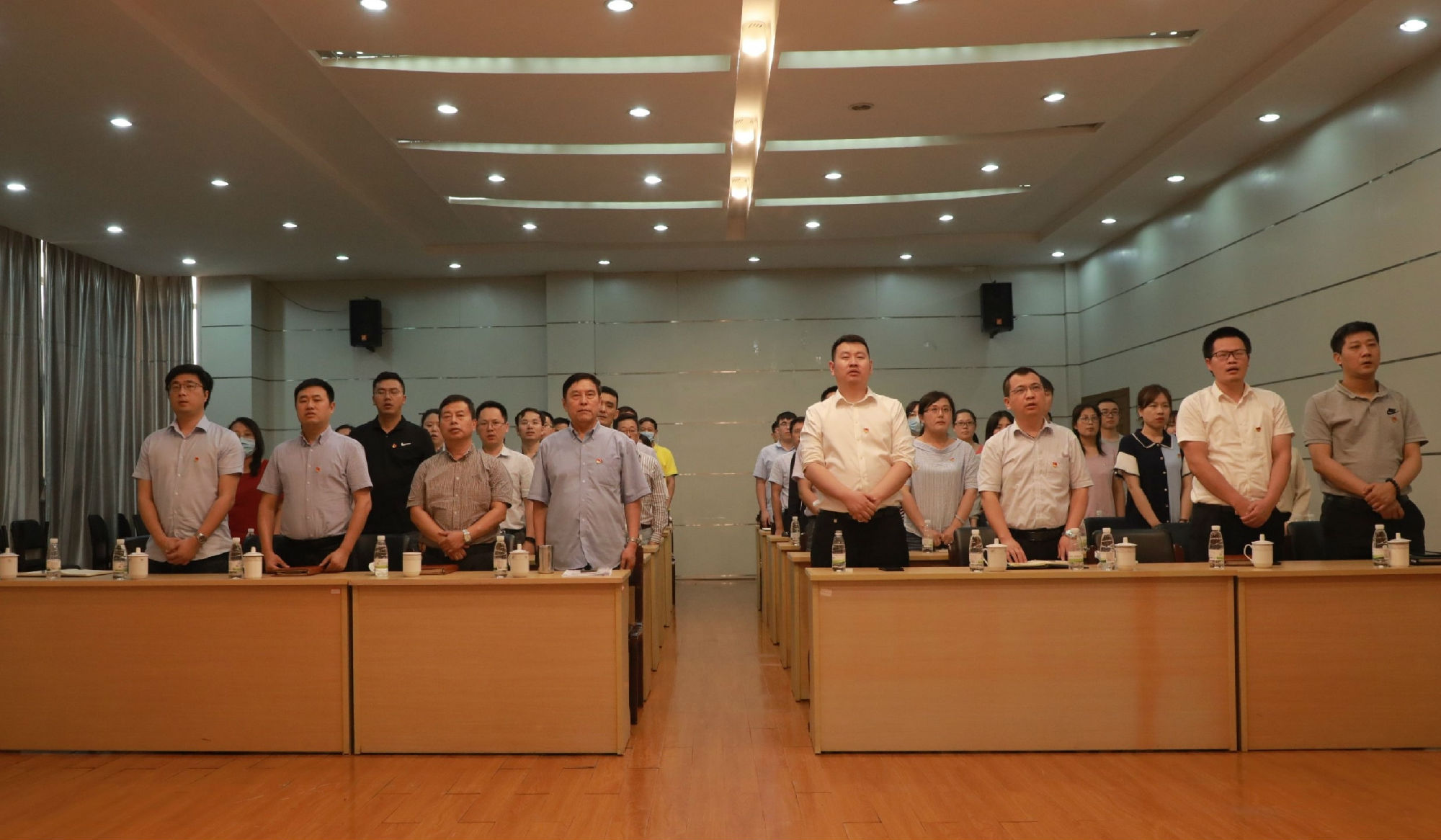 2020年6月28日下午,中共南大環(huán)保黨總支召開慶祝建黨99周年全體黨員大會(huì),回顧黨的光輝歷程,發(fā)揮黨的光榮傳統(tǒng)。公司全體黨員、入黨積極分子、中高層干部參加會(huì)議。大會(huì)在莊嚴(yán)的國(guó)歌聲中拉開帷幕。