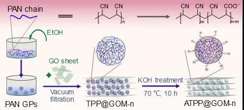 圖1 聚丙烯腈凝膠粒子插層制備GO復合膜示意圖
